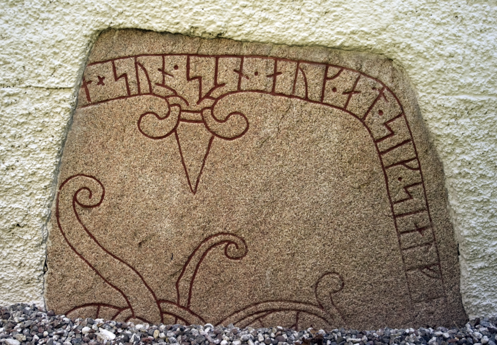 Vid kyrkan finns två delar av en runsten. Det är okänt var stenen ursprungligen stod, men på 1200-talet murades delarna in i vapenhusets västra och södra vägg. Klicka vidare för att läsa mer om inskrifternas betydelse!