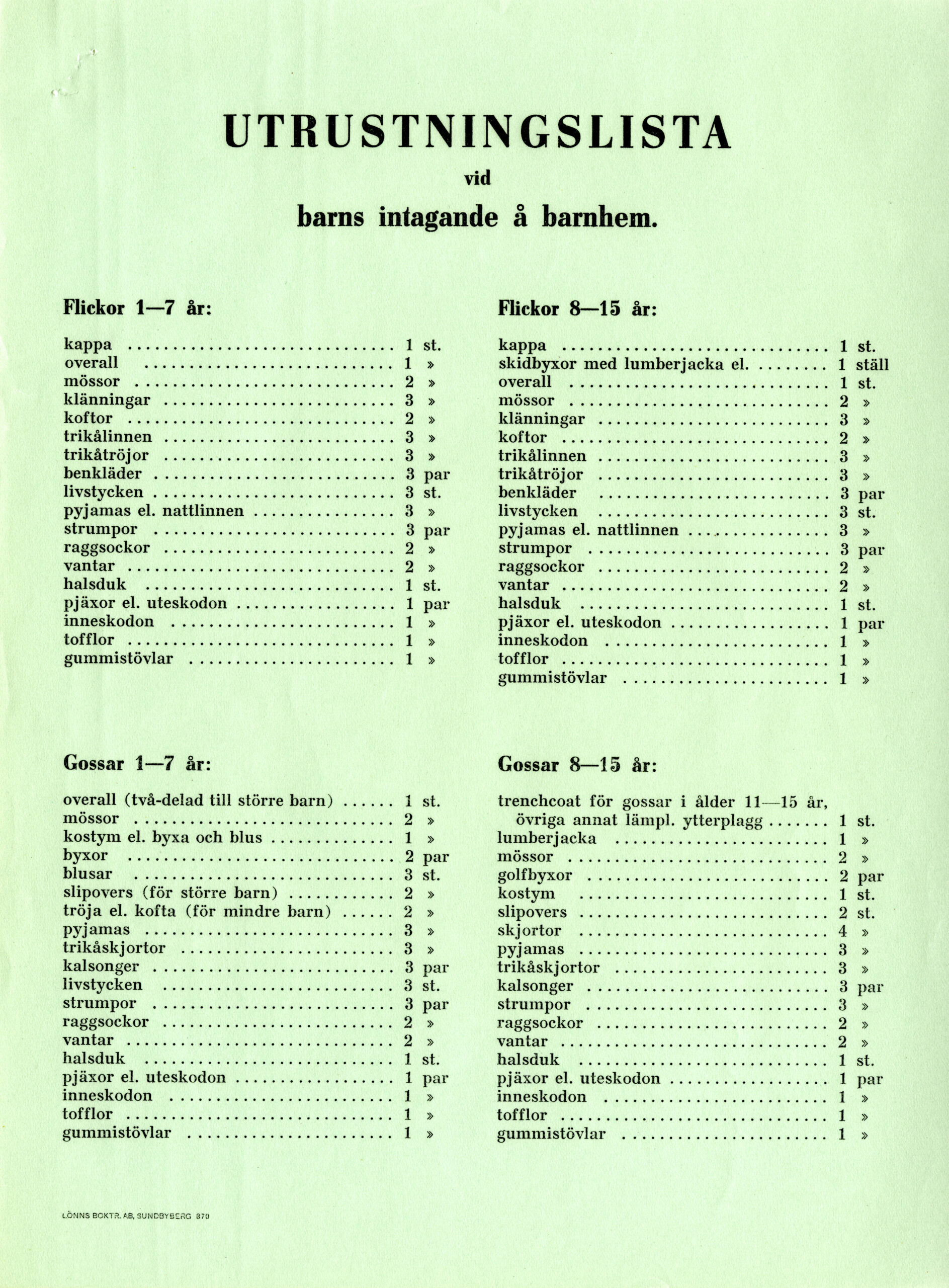 - Vad kan utrustningslistan säga om hur barn på barnhem hade det på 1950-talet?