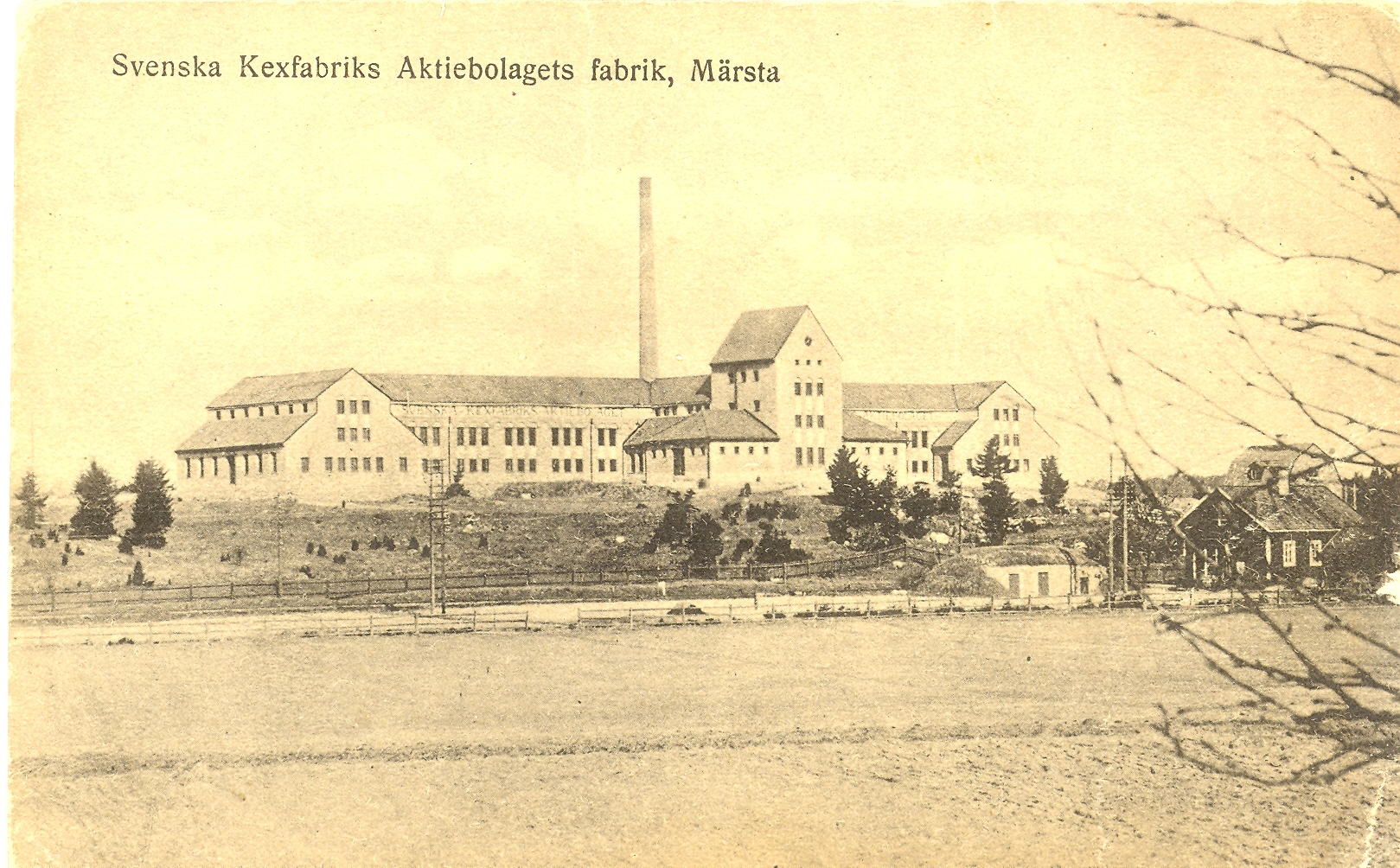 Vykort med Kexfabriken fotograferad från andra sidan järnvägsspåren. Klicka på Bildinformation för att se bilderna i större format.