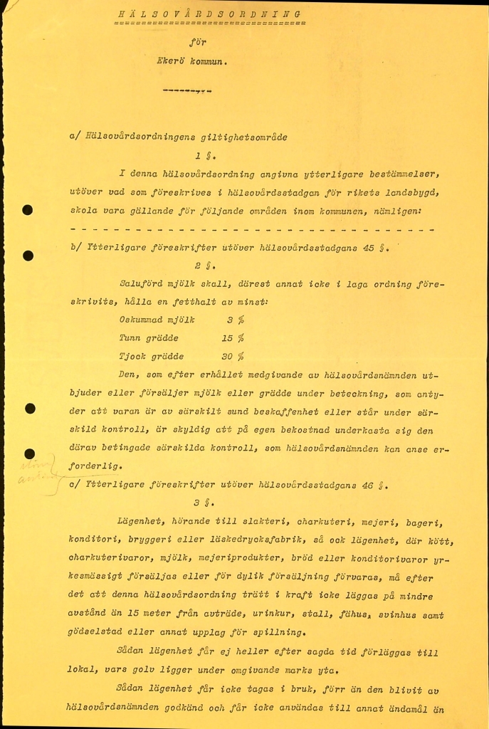 1935 fick mjölk fick bara säljas i särskilda mjölkbutiker, och inte ihop med andra matvaror. Enligt kommunens häslovårdsordning på Ekerö skulle mjölkbutiken ligga minst 15 meter från ett dass, och djur var helt förbjudna i butiken: “lägenhet […] där mjölk, mejeriprodukter […] försäljas, eller för dylik försäljning förvaras, må […] icke läggas på mindre avstånd än 15 meter från avträde, urinkur [med mera.”]