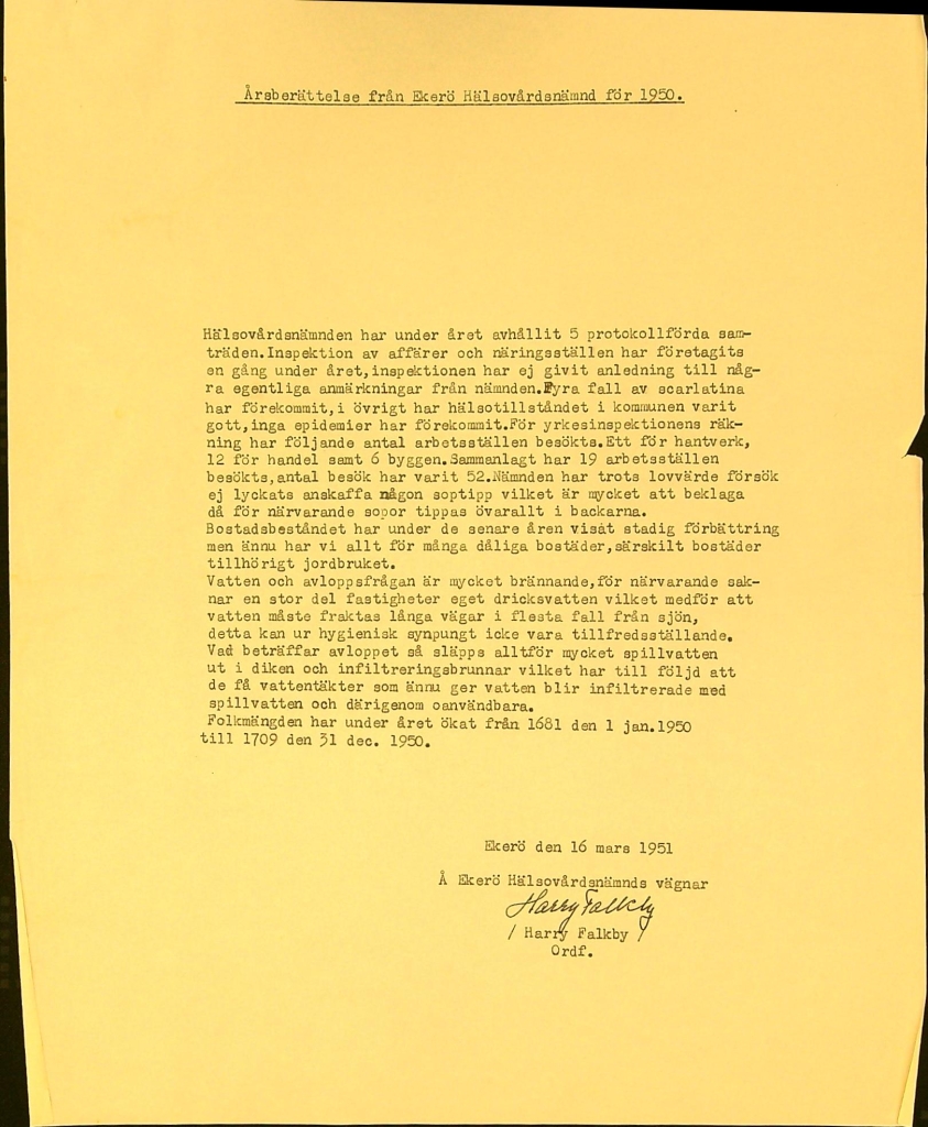 Rapport från länsveterinären till länsstyrelsen i Stockholms län, 30 november 1936.