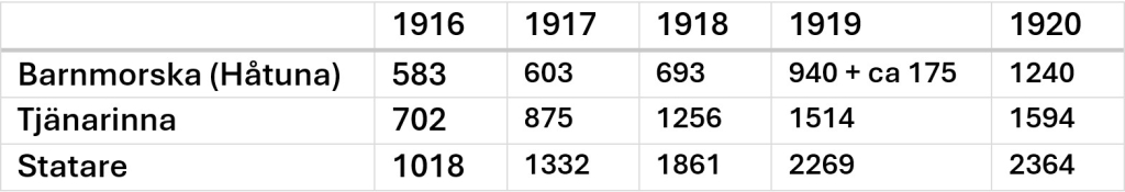 Kommunen gav Agnes en liten löneökning för sista delen av år 1918. Men för nästa år ville de inte ta något beslut. I början av 1919 verkar det som att Agnes har fått nog. Hon sa upp sig och bad att direkt få en vikarie. Det blir Hildur Johansson från Stockholm som tar jobbet. Nu har kommunen höjt lönen lite, till 600 kr. Efter ett tag säger även Hildur upp sig. Hon skriver sitt brev från Stocksund och kanske är det där hon har fått ett nytt jobb? På tidningssidan här kan du se anställningsannonser för jobbet som barnmorska både i Håtuna och Stocksund. Du kan också jämföra lönerna!