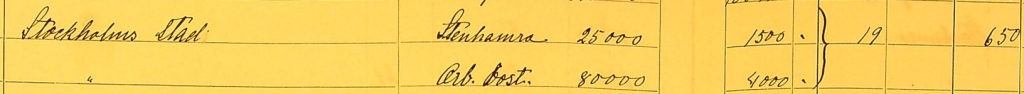 Stockholms stad ägde mark på Färingsö, nämligen stenbrottet i Stenhamra och ett hus där arbetarna bodde. I röstlängden står det att Stockholms stad tjänar 5 500 kronor på sin egendom och det gav rätt till 19 röster i kommunvalet. Det står också att fru Eliasson har en inkomst 123 kronor, och det gav henne två röster i valet.